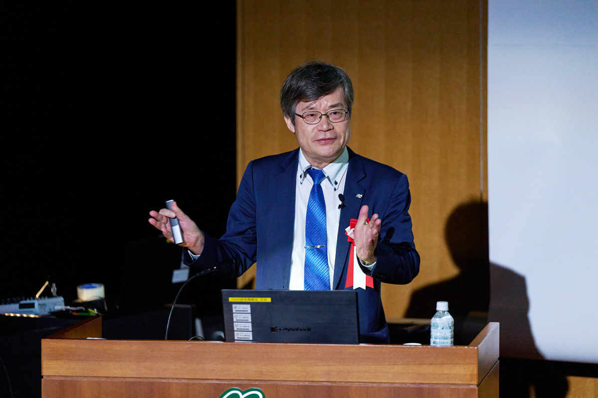 記念講演会では、福田敏男 2020 IEEE President、名古屋大学名誉教授より、IEEEについての紹介がなされ、その後、「世界を照らすLED」と題した講演では、天野浩 名古屋大学教授が、青色LEDの開発や実用化に至った経緯などについて語りました。